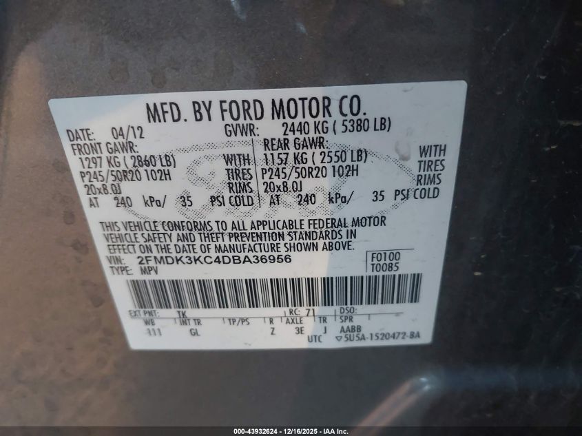 2013 FORD EDGE 2013 року Бензин, 3.5, Передний привод, vin - 2FMDK3KC4DBA36956 из США