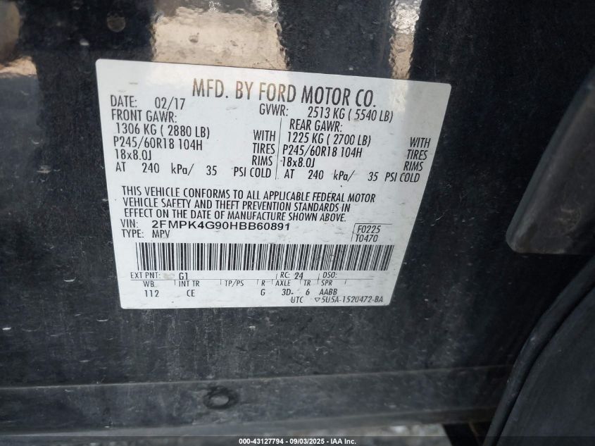 2017 FORD EDGE 2017 року Бензин, 2.0, Полный привод, vin - 2FMPK4G90HBB60891 из США