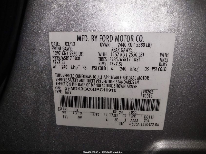 2013 FORD EDGE 2013 року Бензин, 3.5, Передний привод, vin - 2FMDK3GC6DBC10910 из США