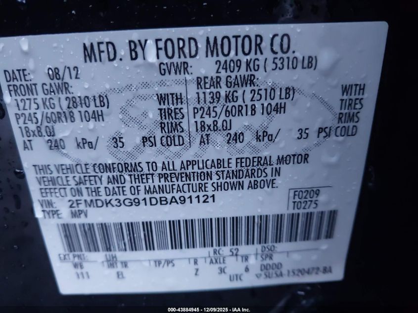2013 FORD EDGE 2013 року Бензин, 2.0, Передний привод, vin - 2FMDK3G91DBA91121 из США