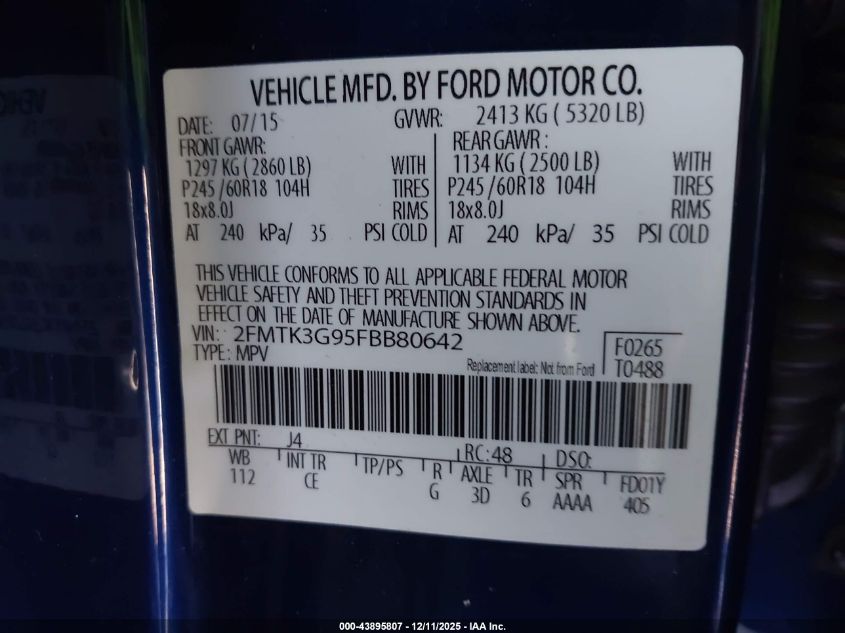 2015 FORD EDGE 2015 року Бензин, 2.0, Передний привод, vin - 2FMTK3G95FBB80642 из США
