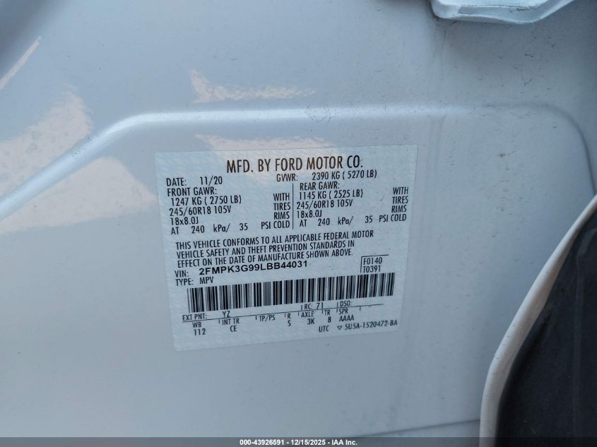 2020 FORD EDGE 2020 року Бензин, 2.0, Передний привод, vin - 2FMPK3G99LBB44031 из США