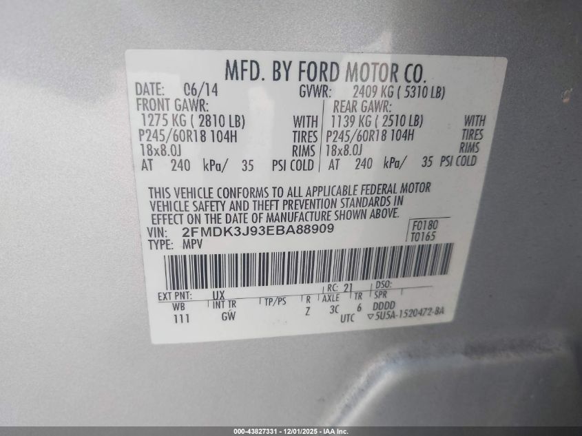 2014 FORD EDGE 2014 року Бензин, 2.0, Передний привод, vin - 2FMDK3J93EBA88909 из США