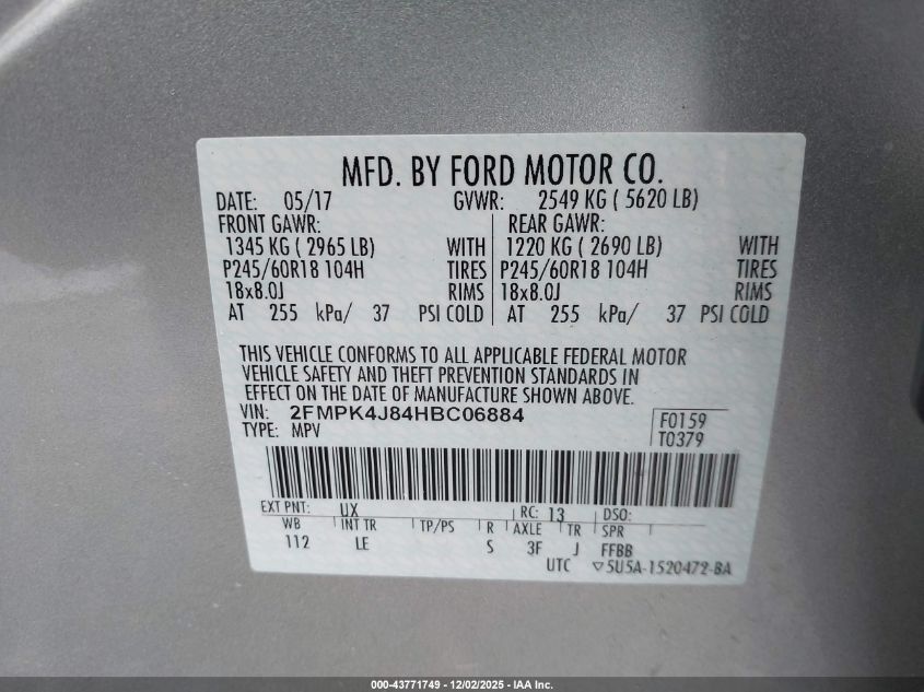 2017 FORD EDGE 2017 року Бензин, 3.5, Полный привод, vin - 2FMPK4J84HBC06884 из США