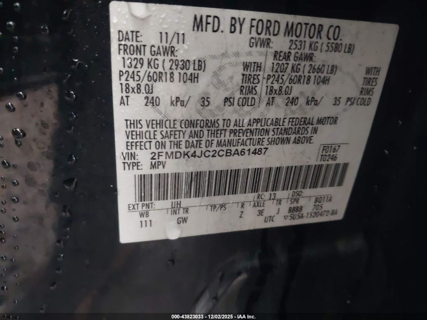 Цвет ЧерныйЦилиндры 6Привод Полный приводVIN 2FMDK4JC2CBA61487Состояние СтационарноПовреждения Передняя или задняяДата аукциона 2025-12-12 AutoRIA