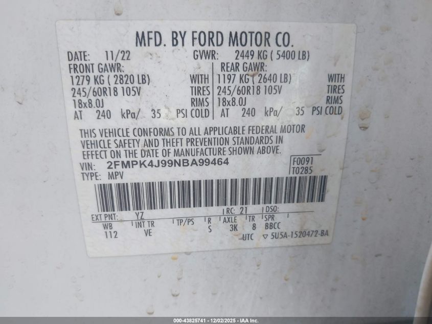 2022 FORD EDGE 2022 року Бензин, 2.0, Полный привод, vin - 2FMPK4J99NBA99464 из США