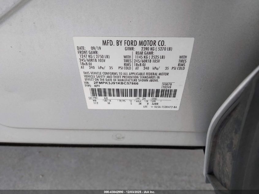 2019 FORD EDGE 2019 року Бензин, 2.0, Передний привод, vin - 2FMPK3J91KBC57866 из США