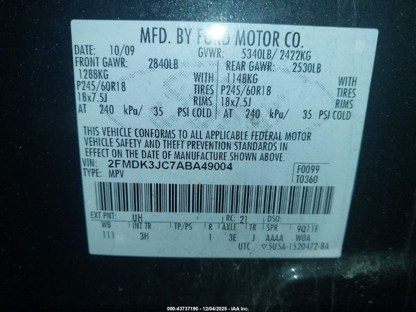 2010 FORD EDGE 2010 року Бензин, 3.5, Передний привод, vin - 2FMDK3JC7ABA49004 из США