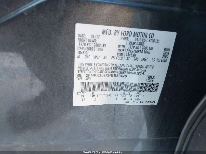 2017 FORD EDGE 2017 року Бензин, 2.0, Передний привод, vin - 2FMPK3J9XHBB30476 из США