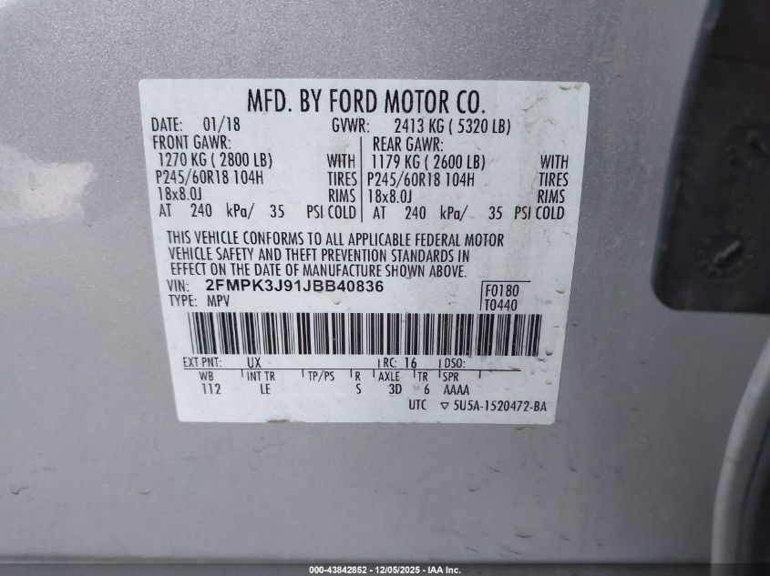 Цвет СеребряныйЦилиндры 4Привод Передний приводVIN 2FMPK3J91JBB40836Состояние СтационарноПовреждения Передняя или задняя AutoRIA