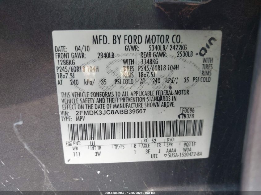 Цвет СерыйЦилиндры 6Привод Передний приводVIN 2FMDK3JC8ABB39567Состояние Заводится и едет (проверено)Повреждения Левая сторона AutoRIA