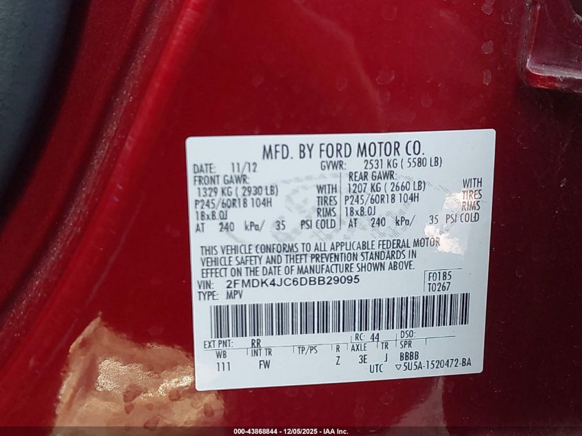 Цвет КрасныйЦилиндры 6Привод Полный приводVIN 2FMDK4JC6DBB29095Состояние СтационарноПовреждения Передняя или задняя AutoRIA