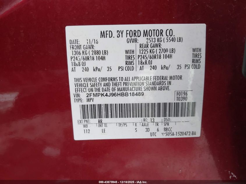 2017 FORD EDGE 2017 року Бензин, 2.0, Полный привод, vin - 2FMPK4J96HBB18489 из США
