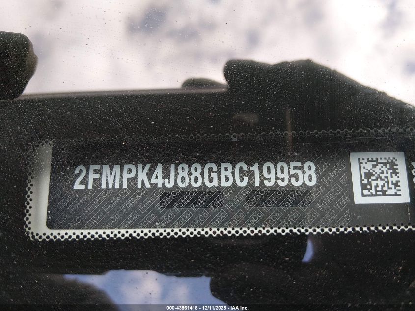 Цвет БелыйЦилиндры 6Привод Полный приводVIN 2FMPK4J88GBC19958Состояние Заводится и едет (проверено)Повреждения Левая сторона AutoRIA