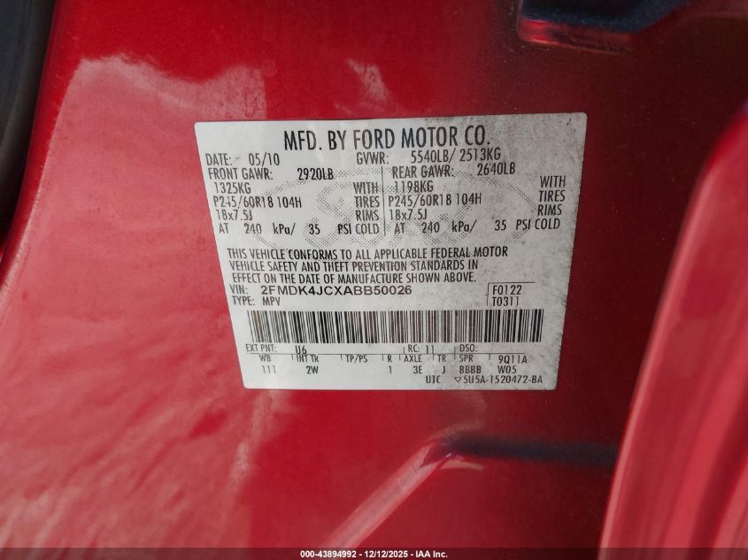 Цвет КрасныйЦилиндры 6Привод Полный приводVIN 2FMDK4JCXABB50026Состояние Заводится и едет (проверено)Повреждения Передняя или задняя AutoRIA