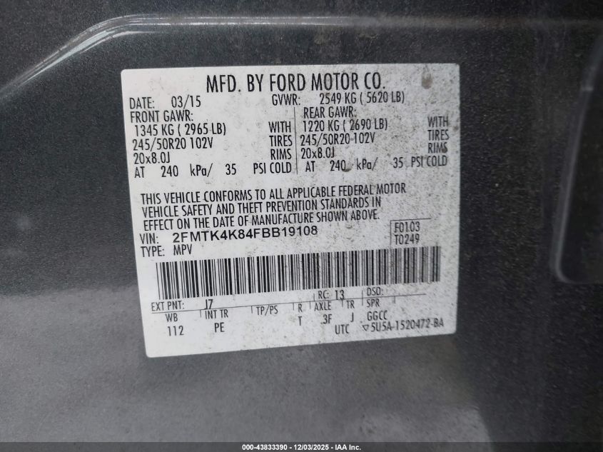 Цвет СерыйЦилиндры 6Привод Полный приводVIN 2FMTK4K84FBB19108Состояние Заводится и едет (проверено)Повреждения Левая сторона AutoRIA