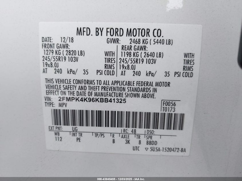 2019 FORD EDGE 2019 року Бензин, 2.0, Полный привод, vin - 2FMPK4K96KBB41325 из США