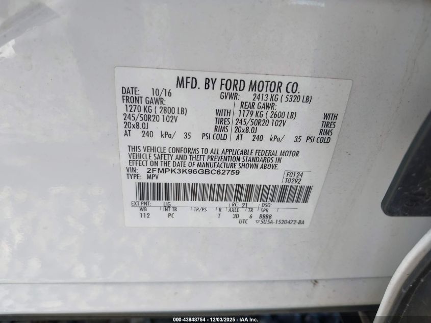 Цвет БелыйЦилиндры 4Привод Передний приводVIN 2FMPK3K96GBC62759Состояние ЗаводитсяПовреждения Передняя или задняя AutoRIA