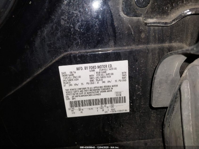 Цвет ЧерныйЦилиндры 6Привод Полный приводVIN 2FMPK4K89GBC23922Состояние СтационарноПовреждения Передняя или задняя AutoRIA
