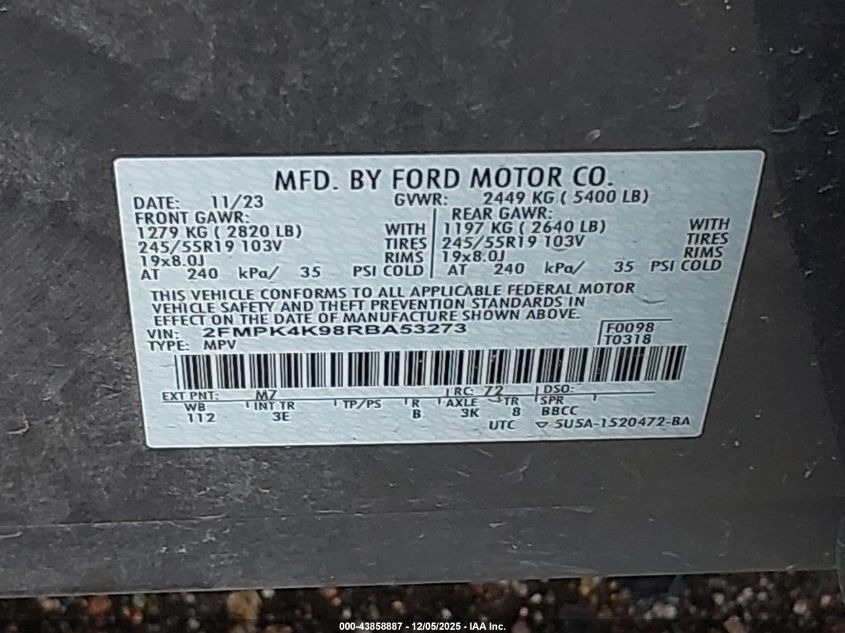 2024 FORD EDGE 2024 року Бензин, 2.0, Полный привод, vin - 2FMPK4K98RBA53273 из США