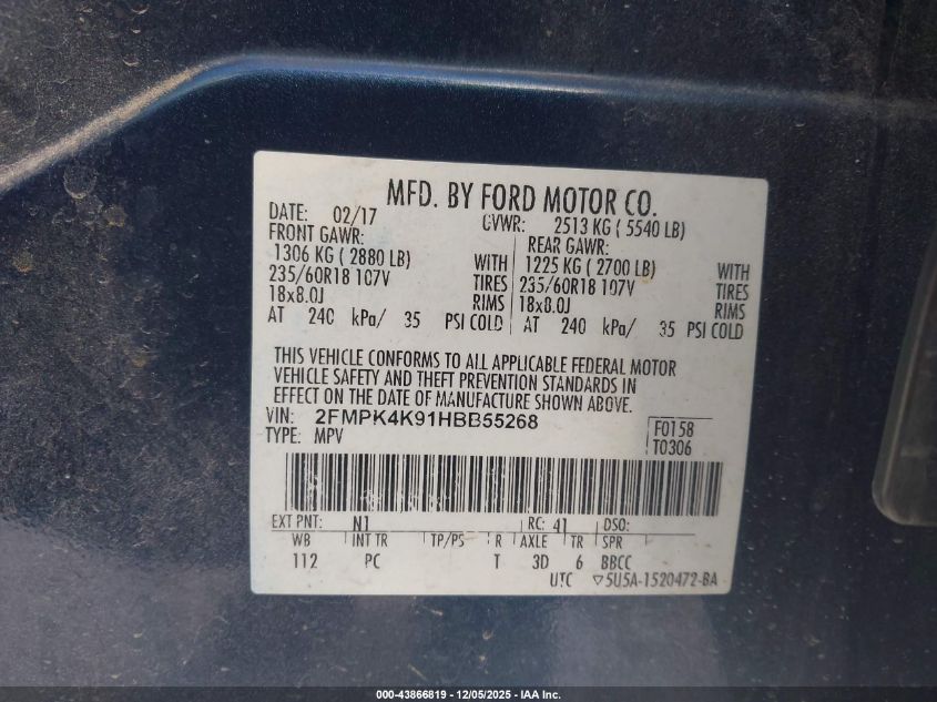 2017 FORD EDGE 2017 року Бензин, 2.0, Полный привод, vin - 2FMPK4K91HBB55268 из США