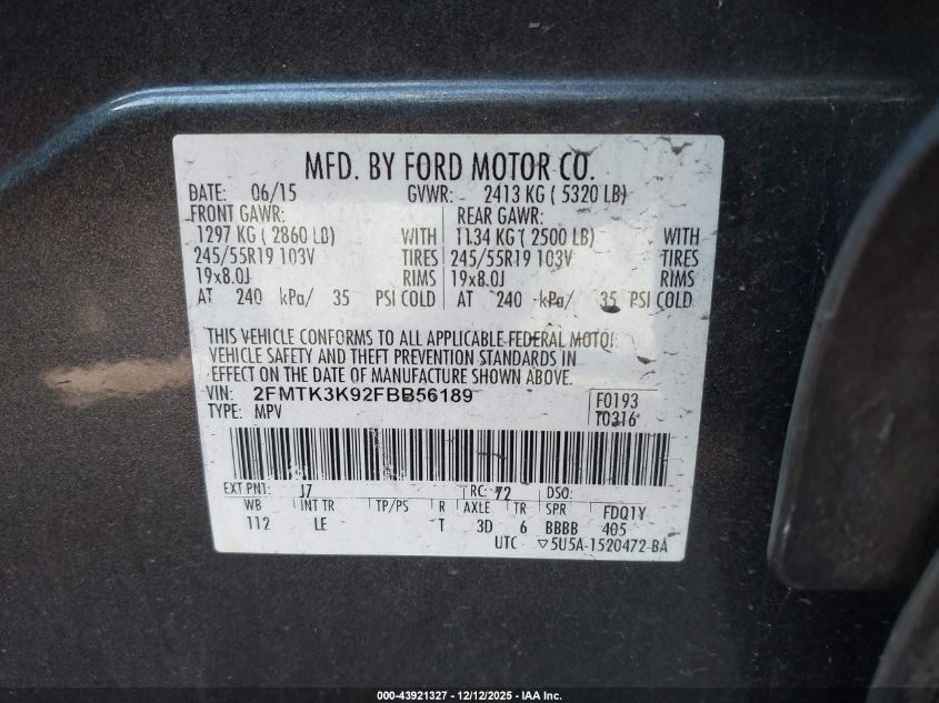 Цвет СерыйЦилиндры 4Привод Передний приводVIN 2FMTK3K92FBB56189Состояние Заводится и едет (проверено)Повреждения Передняя или задняя AutoRIA