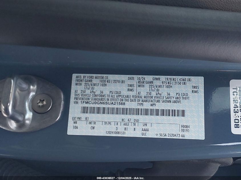 2025 FORD ESCAPE 2025 року Бензин, 1.5, Передний привод, vin - 1FMCU0GN6SUA21588 из США