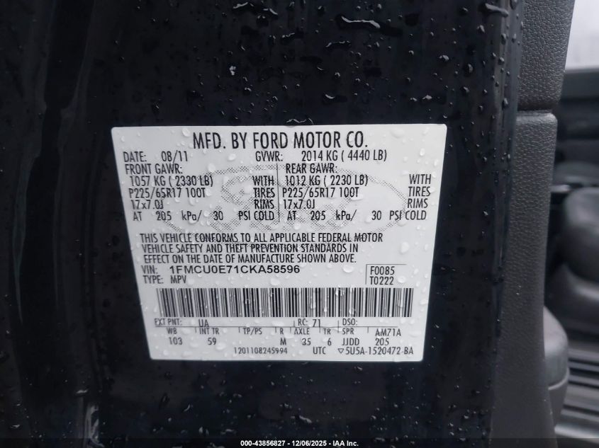 Цвет ЧерныйЦилиндры 4Привод Передний приводVIN 1FMCU0E71CKA58596Состояние Заводится и едет (проверено)Повреждения Правая сторона AutoRIA