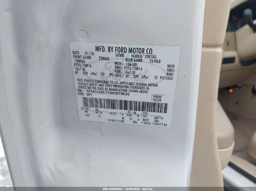 Цвет БелыйЦилиндры 4Привод Полный приводVIN 1FMCU9E77AKB79635Состояние Заводится и едет (проверено)Повреждения Передняя или задняя AutoRIA
