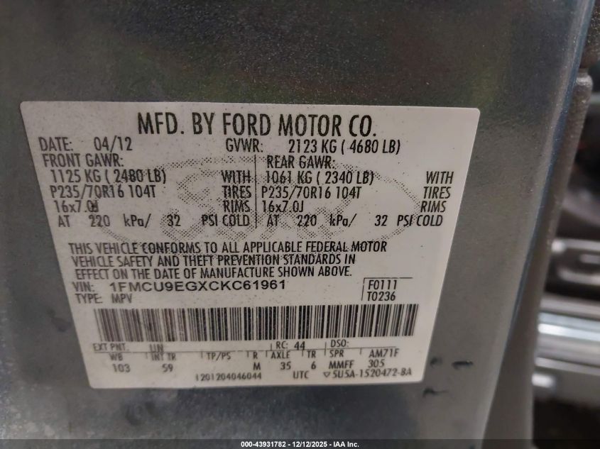 2012 FORD ESCAPE 2012 року Бензин, 3.0, Полный привод, vin - 1FMCU9EGXCKC61961 из США