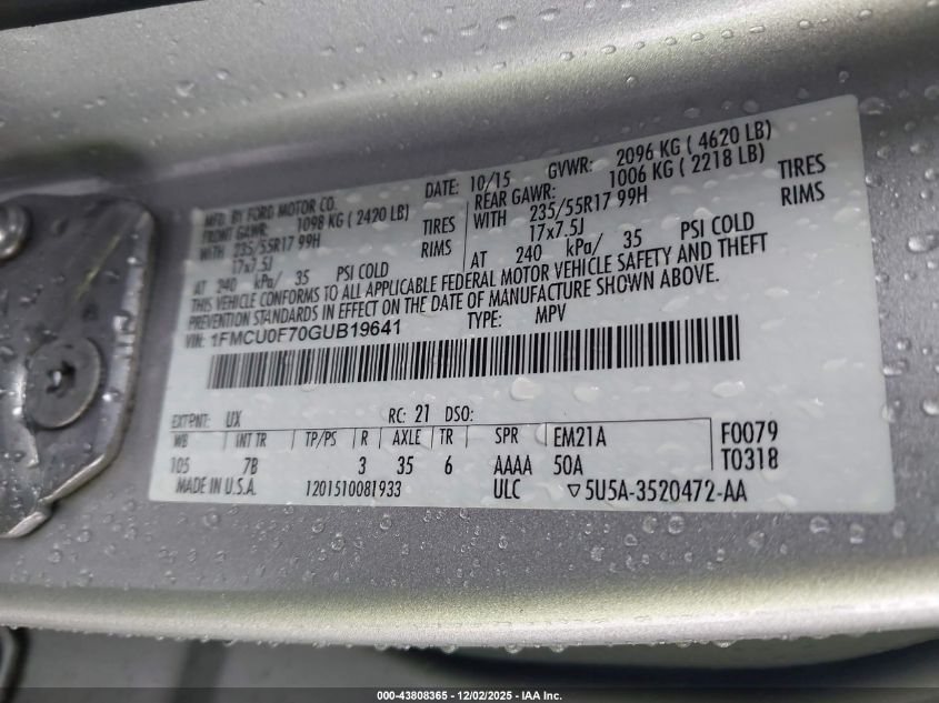 Цвет СерыйЦилиндры 4Привод Передний приводVIN 1FMCU0F70GUB19641Состояние Заводится и едет (проверено)Повреждения Передняя или задняя AutoRIA