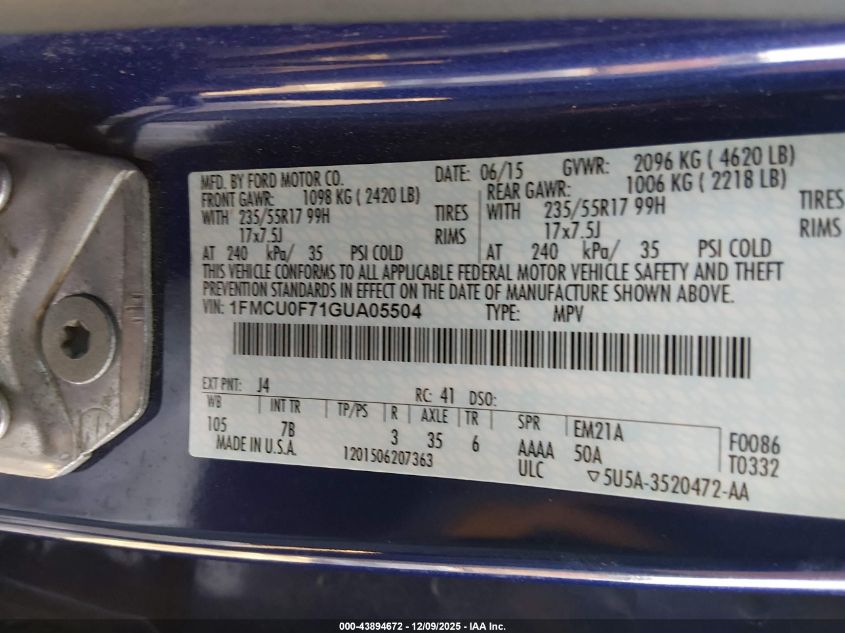 Цвет СинийЦилиндры 4Привод Передний приводVIN 1FMCU0F71GUA05504Состояние Заводится и едет (проверено)Повреждения Передняя правая AutoRIA