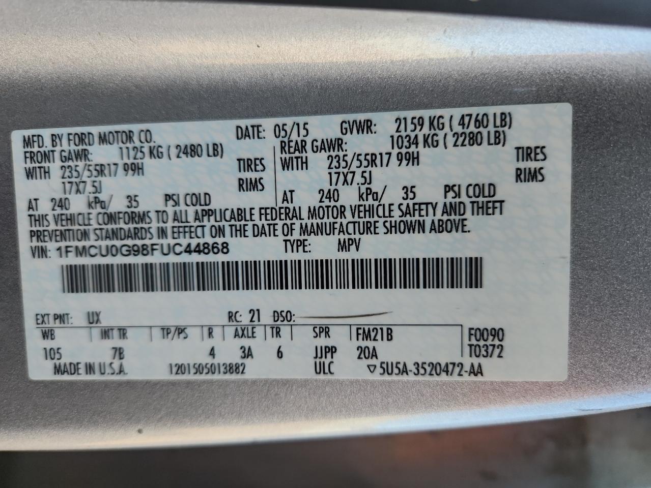 Цвет СеребряныйЦилиндры 4VIN 1FMCU0G98FUC44868Состояние НеизвестноПовреждения Передняя или задняя AutoRIA
