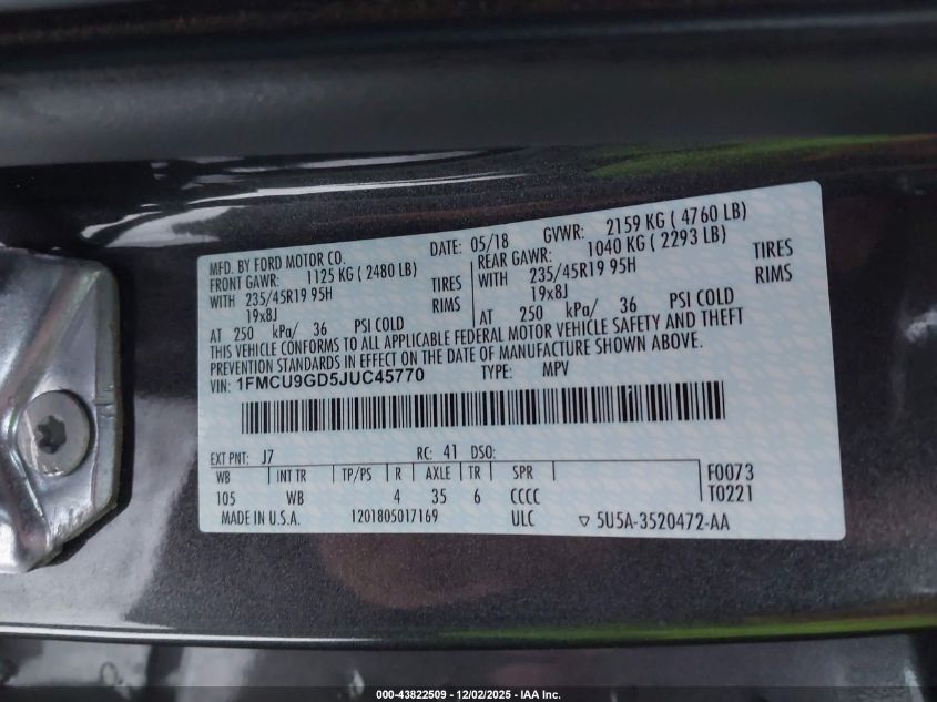 Цвет СерыйЦилиндры 4Привод Полный приводVIN 1FMCU9GD5JUC45770Состояние Заводится и едет (проверено)Повреждения Передняя или задняя AutoRIA