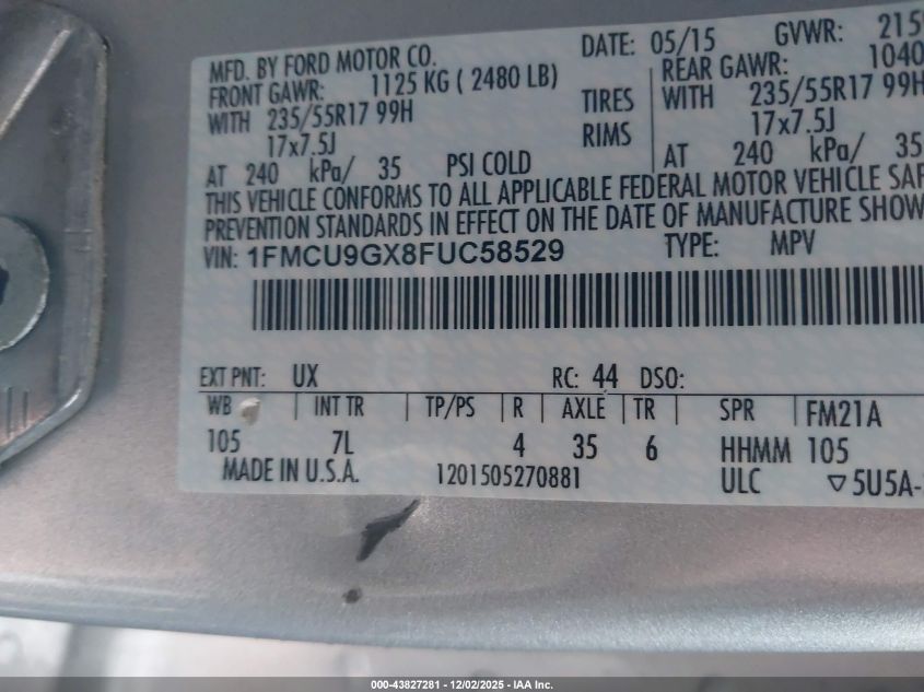2015 FORD ESCAPE 2015 року Бензин, 1.6, Полный привод, vin - 1FMCU9GX8FUC58529 из США