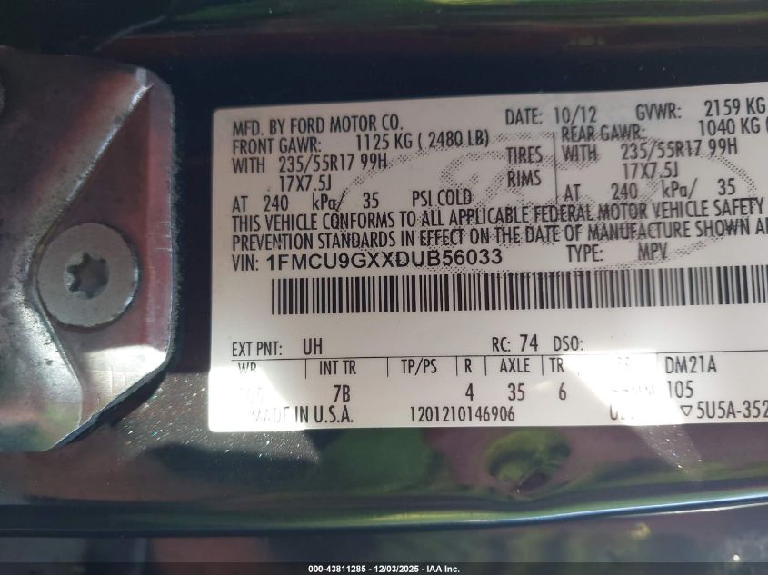 Цвет ЧерныйЦилиндры 4Привод Полный приводVIN 1FMCU9GXXDUB56033Состояние Заводится и едет (проверено)Повреждения Передняя или задняя AutoRIA
