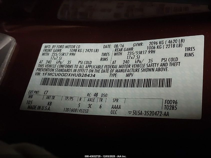 2017 FORD ESCAPE SE