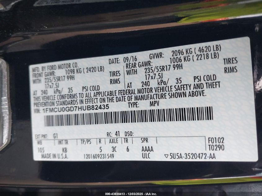 2017 FORD ESCAPE 2017 року Бензин, 1.5, Передний привод, vin - 1FMCU0GD7HUB82435 из США