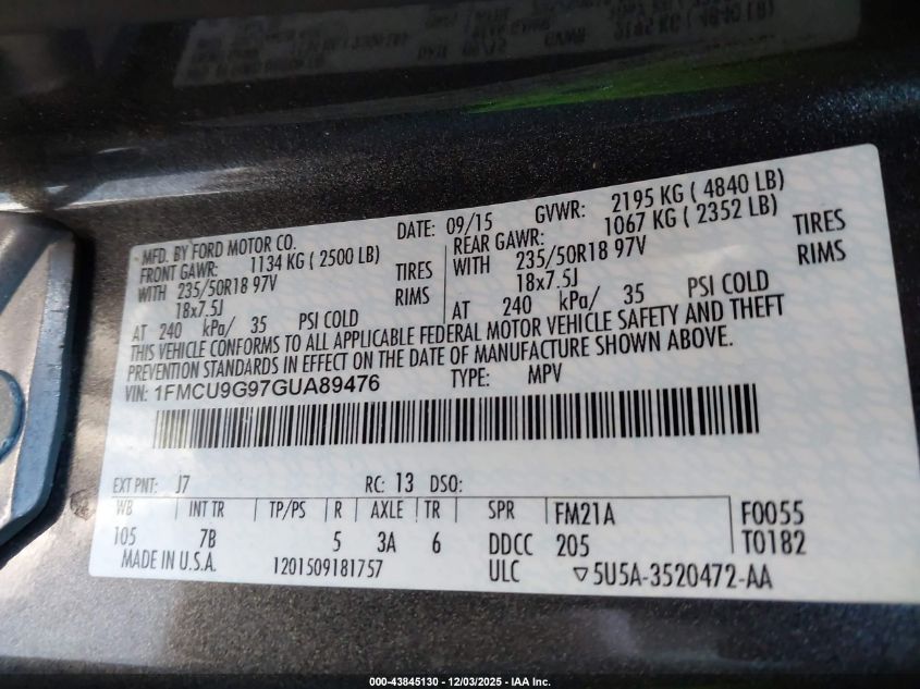 2016 FORD ESCAPE 2016 року Бензин, 2.0, Полный привод, vin - 1FMCU9G97GUA89476 из США