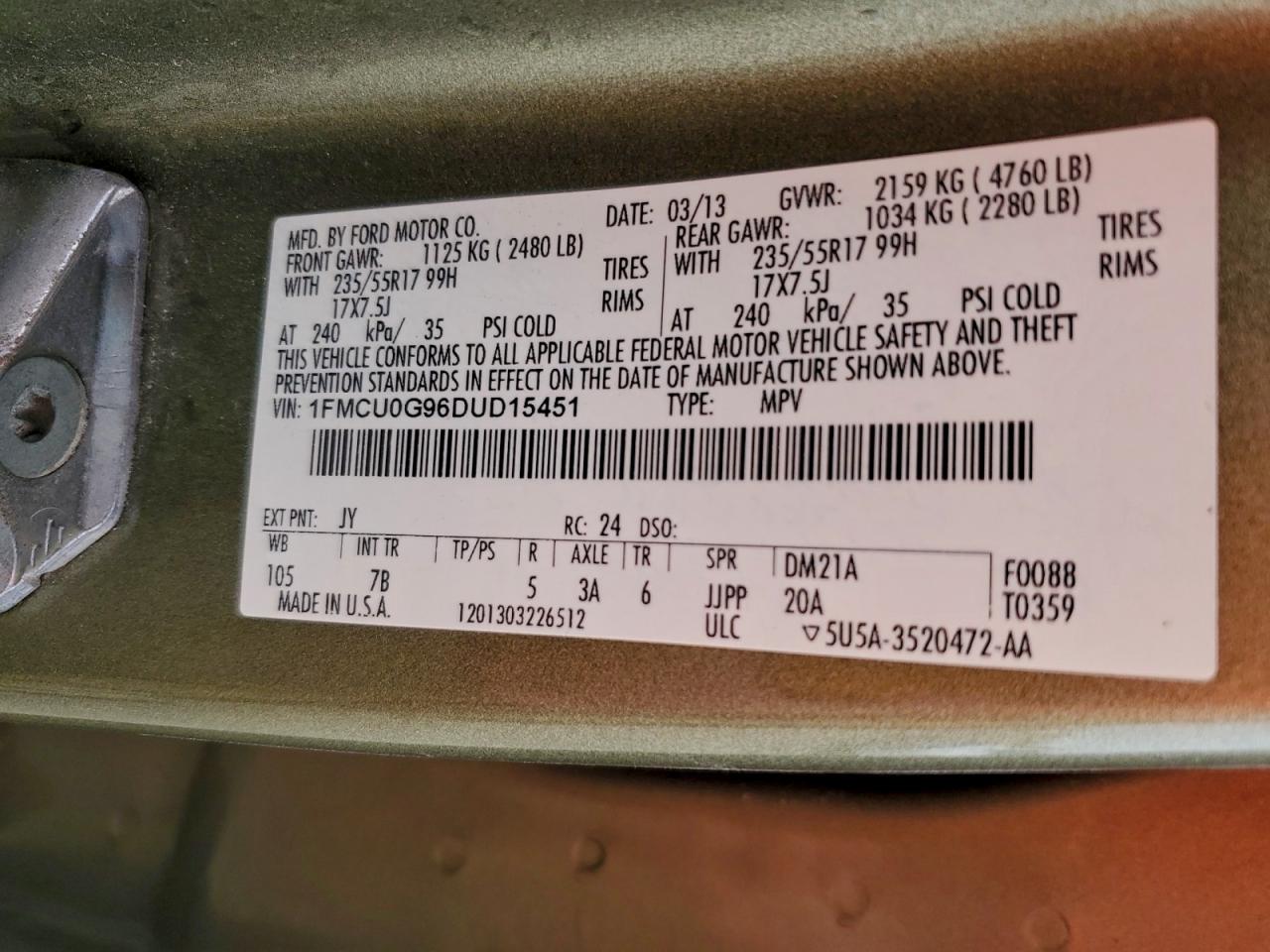 Цвет ЗеленыйЦилиндры 4VIN 1FMCU0G96DUD15451Состояние Заводится и едет (проверено)Повреждения Передняя или задняя AutoRIA