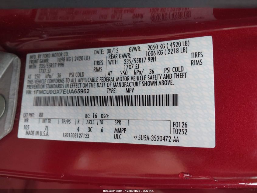 Цвет КрасныйЦилиндры 4Привод Передний приводVIN 1FMCU0GX7EUA65962Состояние СтационарноПовреждения Передняя правая AutoRIA