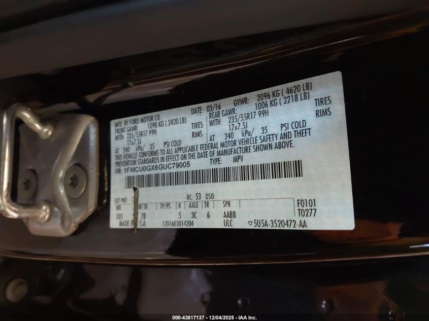 2016 FORD ESCAPE 2016 року Бензин, 1.6, Передний привод, vin - 1FMCU0GX6GUC79005 из США