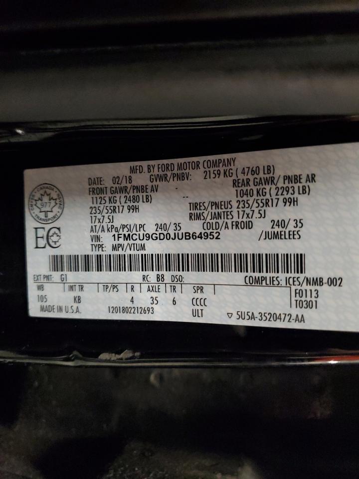 2018 FORD ESCAPE 2018 року Бензин, 1.5, 4x4 с передним приводом, vin - 1FMCU9GD0JUB64952 из США