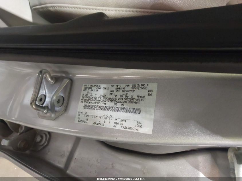 2015 FORD ESCAPE 2015 року Бензин, 2.0, Полный привод, vin - 1FMCU9G93FUC21745 из США