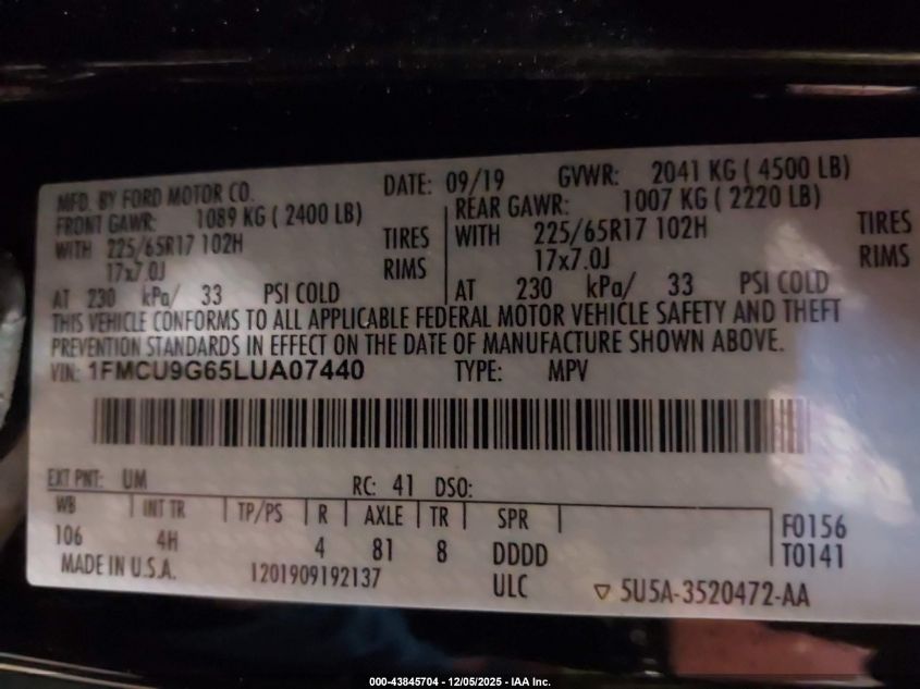 2020 FORD ESCAPE 2020 року Бензин, 1.5, Полный привод, vin - 1FMCU9G65LUA07440 из США