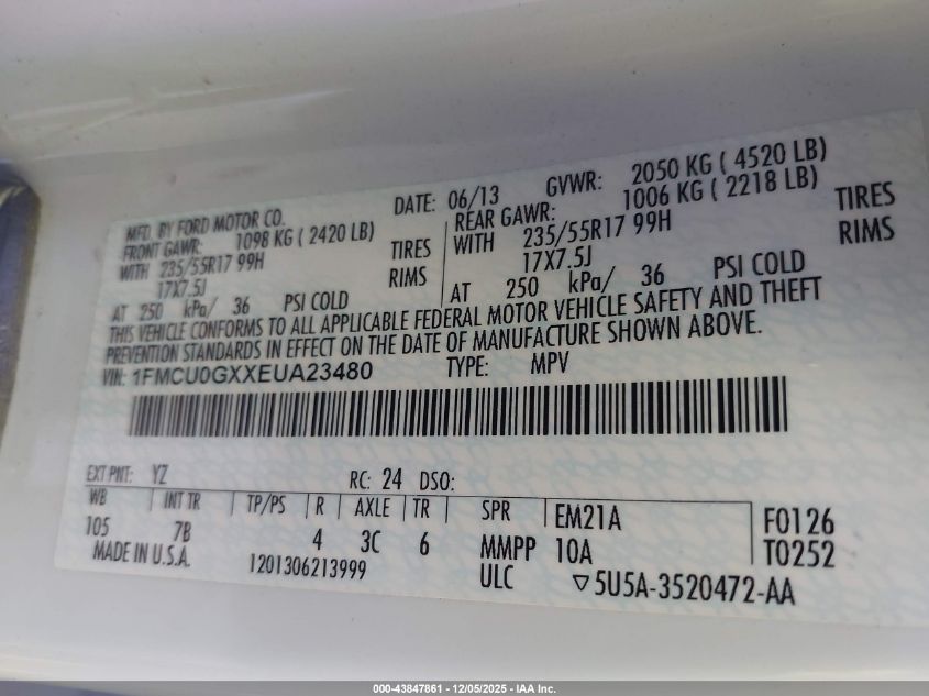 Цвет БелыйЦилиндры 4Привод Передний приводVIN 1FMCU0GXXEUA23480Состояние Заводится и едет (проверено)Повреждения Передняя правая AutoRIA