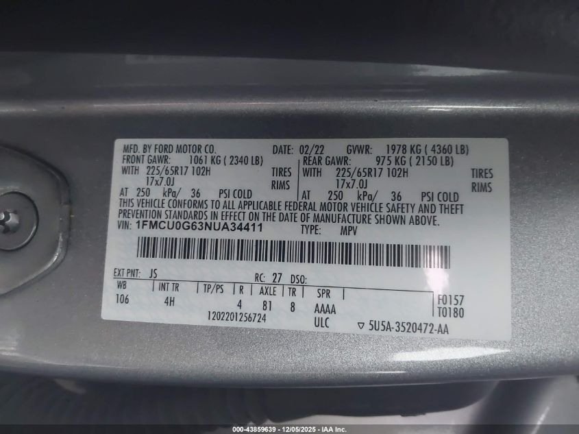 2022 FORD ESCAPE 2022 року Бензин, 1.5, Передний привод, vin - 1FMCU0G63NUA34411 из США