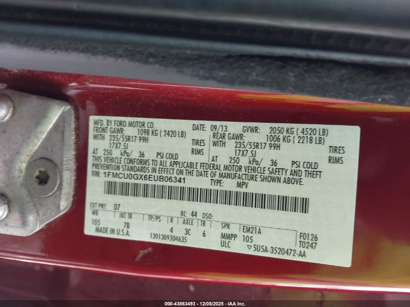 Цвет БордовыйЦилиндры 4Привод Передний приводVIN 1FMCU0GX6EUB06341Состояние Заводится и едет (проверено)Повреждения Правая сторона AutoRIA