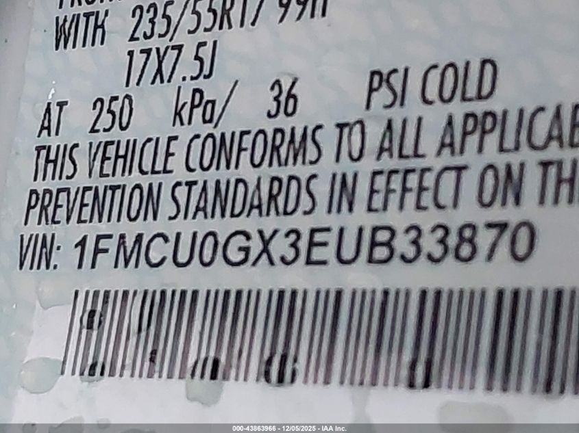 Цвет БелыйЦилиндры 4Привод Передний приводVIN 1FMCU0GX3EUB33870Состояние Заводится и едет (проверено)Повреждения Незначительные AutoRIA