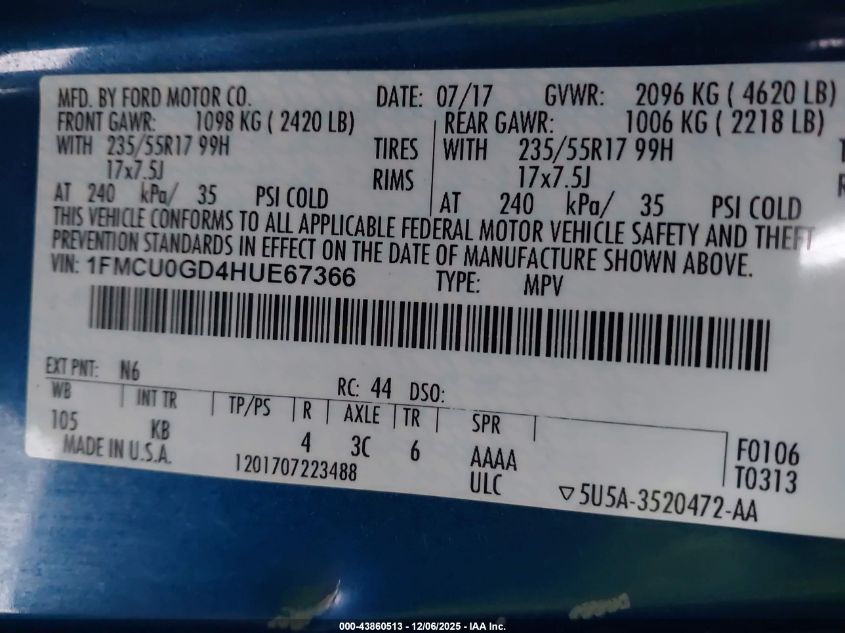 Цвет СинийЦилиндры 4Привод Передний приводVIN 1FMCU0GD4HUE67366Состояние Заводится и едет (проверено)Повреждения Передняя или задняя AutoRIA